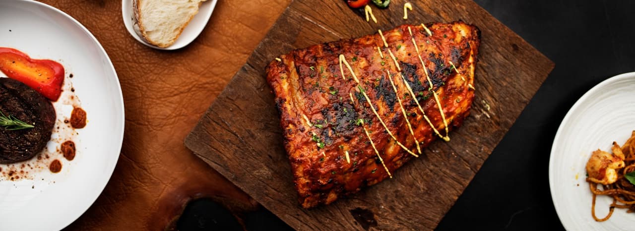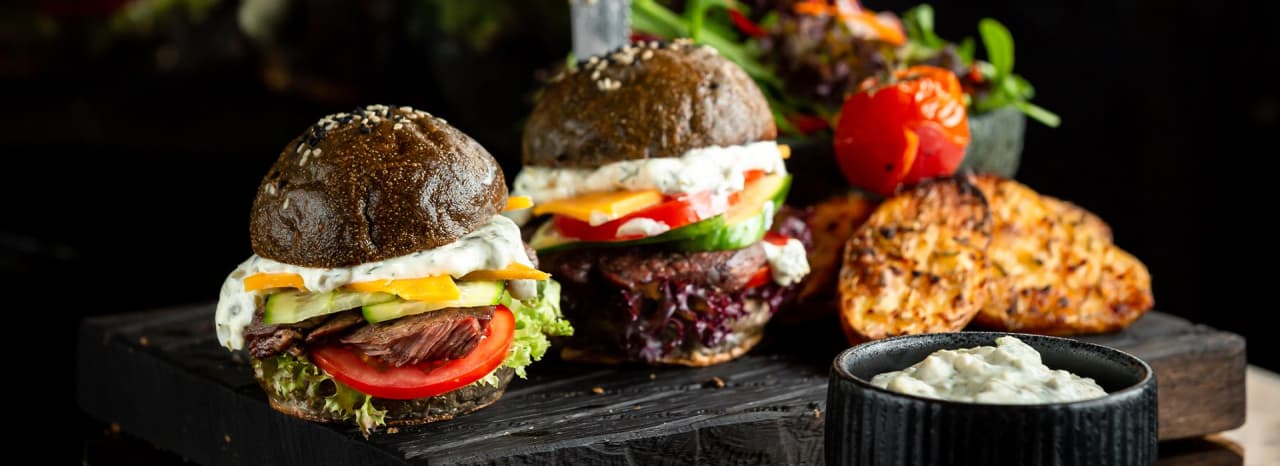 رست بیف، بادمجان با طعم سیر، فلفل دلمه رنگی، کبر (کاپاریس)، سس و پنیر